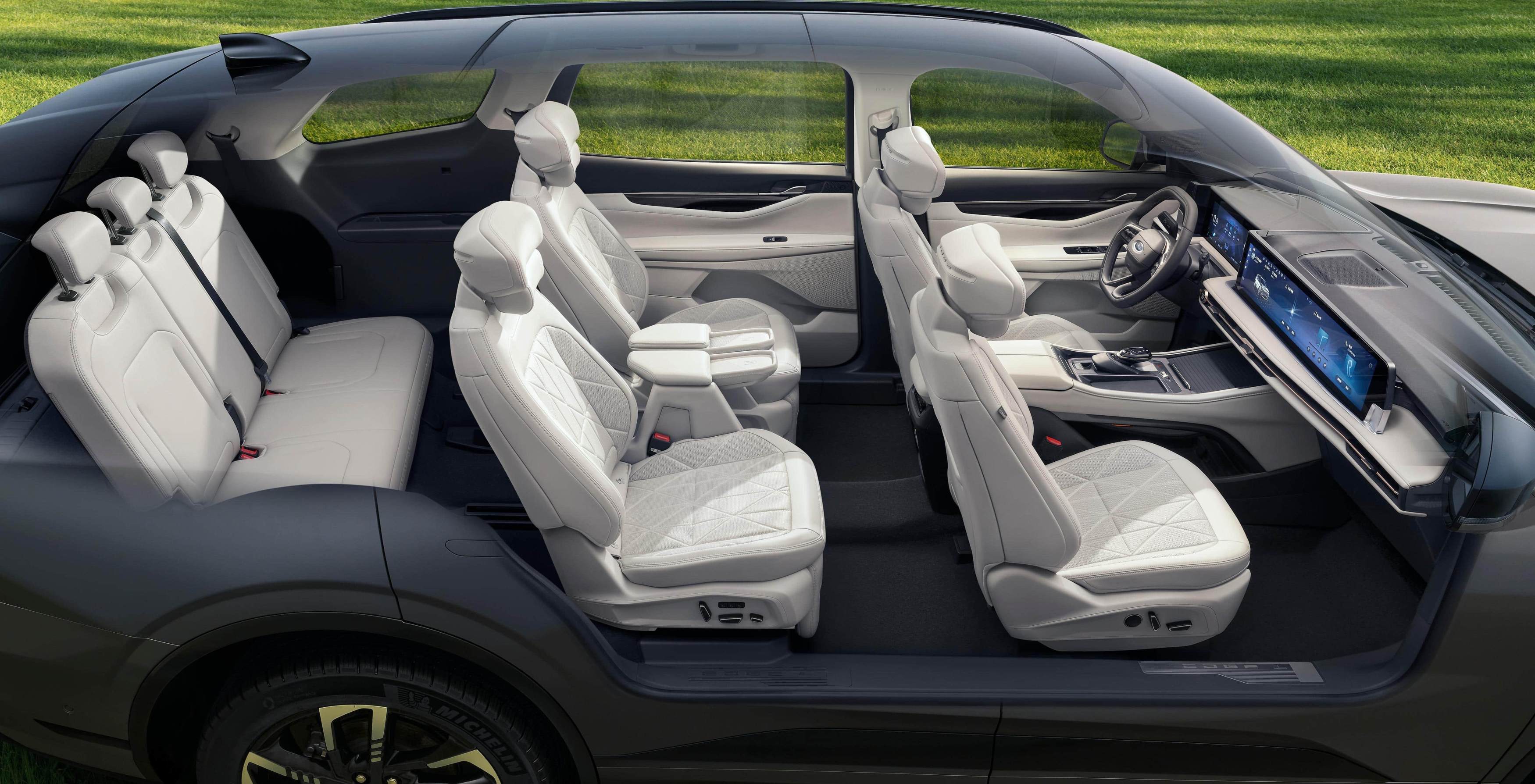 内部空间上,福特锐界L是同级唯一具备2-2-3和2-3-2座椅布局可选的大7座SUV。2-2-3布局下,二排座椅可使用电动调节,更有三种座椅一键调节模式,其中“一键舒躺模式”可自动调节至“座椅向后41度、腿托向上50度”的近零重力模式,带来媲美头等舱的乘坐体验。二排座椅还有同级少有的加热、通风功能,很好地照顾到了老人、孩子的出行体验。2排通道宽至200mm,比一些MPV还宽,成年人可以轻松走进第三排。